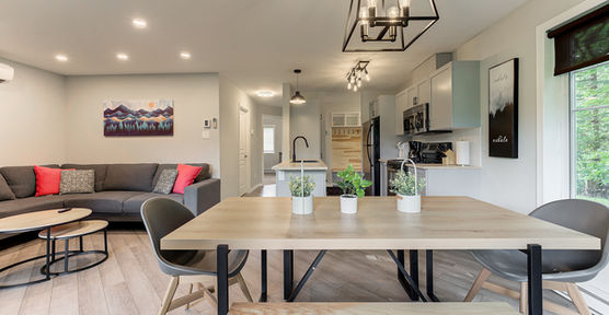 Here’s our stunning property, completely renovated in 2020, located in the heart of the La Bête Golf Course in Mont-Tremblant. Nestled in a peaceful setting with direct access to the Le P’tit Train du Nord bike path and the Diable River, this bright and spacious home features a breathtaking 20-foot cathedral ceiling. It offers 2 bedrooms and 2 bathrooms, comfortably accommodating up to 6 guests. The perfect getaway in the Mont-Tremblant area for families or friends, 8 minutes from the village.