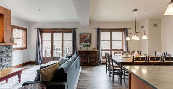 Exceptional space in this 3-bedroom, 2.5-bath condo located at the base of Mont-Tremblant’s Versant Soleil. Features a huge dining area, large fully equipped kitchen, and cozy living room with fireplace. Ideal for families or groups, with ski-in/ski-out access, balconies, seasonal hot tub & pool in commun area, and indoor parking. Comfort and space steps from the slopes! Just 5 minutes walk from the casino and under 10 minutes by car to the Mon-Tremblant village.